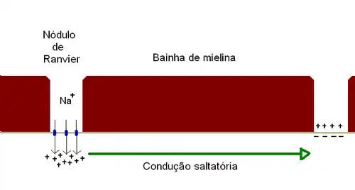 Diante disso, há a impressão de um movimento saltatório, parecendo que os potenciais de ação saltam de nódulo em nódulo, mas o que acontece é o aumento da velocidade da propagação da corrente local que induz o potencial de ação nos nódulos.