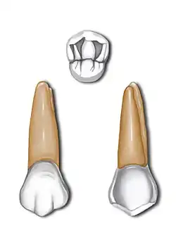 O Primeiro pré-molar superior é um dente inserido osso maxilar.|