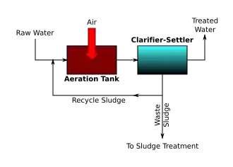 - ↑ «Explaining the Activated Sludge Process» (PDF). University of Virginia - National small flows clearing house. 2003. Consultado em 6 fevereiro 2022. Cópia arquivada (PDF) em 17 agosto 2012