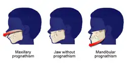 No caso de prognatismo mandibular (nunca prognatismo maxilar), este também é frequentemente referido como mandíbula de Habsburgo, mandíbula de Áustria, maxilar de Habsburgo, maxilar de Áustria, lábio de Habsburgo ou lábio de Áustria, especialmente quando referenciado no contexto de sua prevalência entre os membros históricos da Casa de Habsburgo.[2][3]