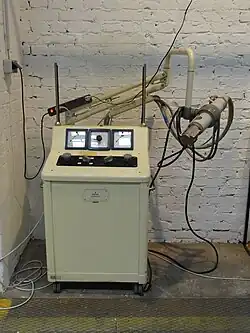 Os aceleradores de partículas lineares para uso médico, desenvolvidos desde os anos de 1940, começaram a substituir os aparelhos de raio X e as unidades de cobalto nos anos 1980 e essas terapias antigas estão, agora, caindo em desuso. O primeiro acelerador médico de partículas foi usado no hospital Hammersmith em Londres no ano de 1953.[21] Os aceleradores lineares podem produzir energias mais altas, possuem feixes mais colimados e não produzem resíduos radioativos com seus problemas de eliminação como as terapias de radioisótopos.