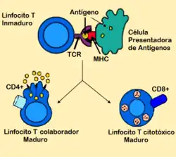 Este fenômeno é chamado de restrição-MHC. A educação de células T, tornando-as aptas ao reconhecimento de moléculas MHC do próprio corpo (MHC próprio) ocorre no timo.