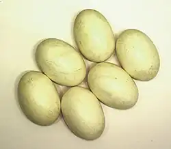 - Reprodução ovípara (pondo ovos). A fêmea põe ovos no exterior que transportam os nutrientes necessários para que o embrião seja nutrido durante o seu desenvolvimento. Estas substâncias (da clara e da gema do ovo) tiveram origem nas glândulas do corpo da mãe que formaram o ovo, mas o ovo é depois depositado fora do corpo da fêmea, na terra ou na água. A maioria dos invertebrados são ovíparos, assim como os peixes teleósteos e muitos peixes cartilagíneos (outros são ovovivíparos ou mesmo vivíparos), e a maioria dos anfíbios e répteis (alguns são também ovovivíparos), mas entre os mamíferos os únicos ovíparos são os monotremados (ornitorrinco, equidnas). Os ovos que são postos em terra necessitam de permanecer num local húmido, como os de muitos invertebrados terrestres, ou podem ser ovos com membranas e cascas à volta que os protegem, como os dos vertebrados amniotas. O ovo deve permitir a troca de oxigénio e dióxido de carbono com o meio exterior, para que o embrião possa respirar; é por isso que as cascas dos ovos são porosas ou alguns peixes ou polvos cuidam dos seus ovos criando correntes de água que os oxigenam. As conchas podem ser calcárias (aves, alguns répteis) ou membranosas duras e flexíveis (répteis). Os ovos de peixe podem ser deixados a flutuar na água em grandes quantidades (sardinhas) ou depositados em locais abrigados (em buracos, debaixo de algas ou plantas ou em ninhos preparados pelo animal). Nos cavalos-marinhos a fêmea deposita os seus ovos dentro de uma bolsa especial na barriga do macho, onde se desenvolvem e eclodem, fazendo parecer que o macho está "grávido".[36] As aves são as que constroem os ninhos mais elaborados e incubam os ovos, pois o seu embrião necessita de calor, embora existam exemplos em que não constroem ninhos, como o pinguim-imperador, que mantém os seus ovos quentes entre as patas e a barriga. Crocodilos e algumas cobras, como a cobra-real constroem ninhos que são montes de terra e folhas.[37] Algumas pítons incubação de ovos.[37]