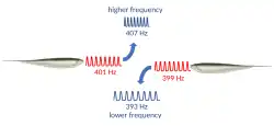 Quando a frequência do estímulo e a frequência de descarga estão próximas uma da outra, as duas ondas de amplitude-tempo sofrem interferência, e os órgãos eletrorreceptores percebem uma única onda com uma frequência intermediária. Além disso, a onda combinada estímulo-EOD tem um padrão de batimento, com a frequência do batimento igual à diferença de frequência entre o estímulo e o EOD.[10]