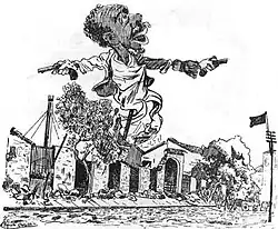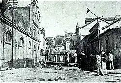 ![]() Bonde virado pela população na Praça da República durante a revolta. | |