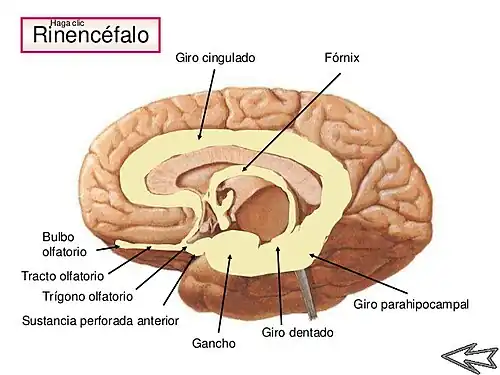 - ↑ "Rinencéfalo" no glossário de Médicos de Portugal, no site sapo.pt acessado a 5 de novembro de 2009