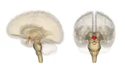 Nos seres humanos e outros animais mamíferos, o relógio circadiano central está localizado numa área cerebral denominada núcleo supraquiasmático,[6] no hipotálamo na base do cérebro, acima das glândulas pituitárias.
