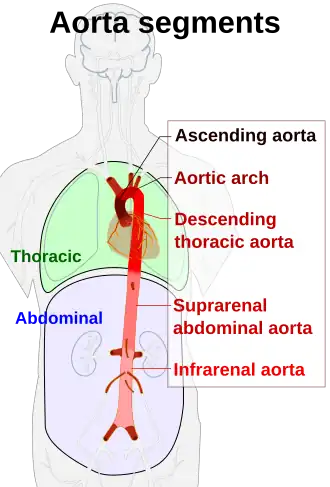 | Segmentos da aorta, com a aorta torácica em verde. | |