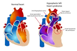 A síndrome da hipoplasia do coração esquerdo (SHCE) é um raro defeito congênito do coração, caracterizado pela formação defeituosa do lado esquerdo do coração.[1] Em bebês com SHCE, o lado esquerdo do coração é subdesenvolvido e não pode bombear sangue suficiente para atender às necessidades do corpo.