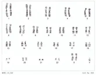 A síndrome de Klinefelter ocorre geralmente de forma aleatória, mas gestantes idosas podem ter um risco ligeiramente aumentado de ter filhos com a anomalia, que não é herdada dos genitores.[8] A síndrome é diagnosticada pelo teste genético conhecido como cariótipo.[4]