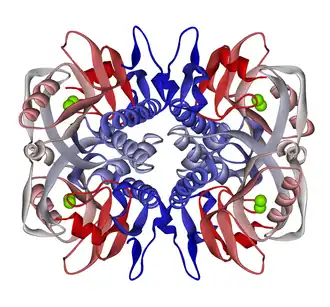 | Diagrama representativo da enzima hipoxantina guanina fosforiboxiltransferase, que encontra-se deficiente na síndrome de Lesch-Nyhan | |