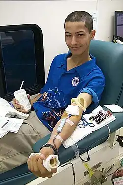 A doação de sangue é o processo pelo qual um doador voluntário tem seu sangue coletado para armazenamento em um banco de sangue ou hemocentro para um uso subsequente em uma transfusão de sangue. Trata-se de um processo de fundamental importância para o funcionamento de um hospital ou centro de saúde.[16]