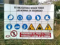 Cartaz ilustrando medidas de segurança obrigatórias em construção civil