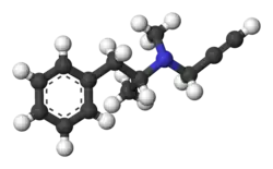 Selegilina ou L-Deprenil[1] (nomes comerciais: Anipril, Eldepril, Zelapar, entre outros)[2] é um inibidor irreversível da monoamina oxidase B (IMAO-B), enzima responsável pela degradação da dopamina. Tem efeitos antidepressivos e antiparkinsoniano. Alguns de seus nomes comerciais são