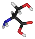A serina[1] (Ser ou S) é um α-aminoácido usado na biossíntese de proteínas. Como todo os aminoácidos, é composta por um grupo amino (-NH3+), um grupo carboxílico (-COOH) e uma cadeia lateral, que na serina é um grupamento metil hidroxilado (CH2OH). Devido a essa cadeia, é classificada como sendo um aminoácido polar e sem carga. Os codões que a codificam são UCU, UCC, UCA, UCG. Além disso, a serina é um aminoácido não-essencial para a dieta humana, uma vez que pode ser sintetizado. Algumas características da Serina podem ser visualizadas no quadro ao lado. [2] [3]