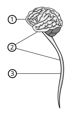 O sistema nervoso central humano (2) é formado pelo encéfalo (1) e pela medula espinhal (3) .