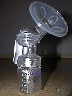 Sugador de leite materno manual.