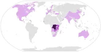 | Local | Principalmente na África (nomeadamente na República Democrática do Congo) |