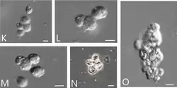 Em culturas microbiológicas sólidas, células solitárias podem, às vezes, se fundir completamente no fundo da placa de Petri em uma estrutura semelhante a um sincício ou pseudoplasmódio, na qual os núcleos não se fundem. A partir desses sincícios, ocorre a gemulação de células-filhas. Esse fenômeno de gemulação a partir de sincícios não foi observado em outros eucariontes, embora a formação de células multinucleadas como resultado da agregação de múltiplas células seja conhecida em outras linhagens de protistas (membros da ordem Dictyosteliida em Eumycetozoa [en], Copromyxa [en] em Lobosa,[4] acrasídeos em Excavata,[5] Sorogena em Alveolata,[6] Sorodiplophrys em Stramenopiles, Guttulinopsis em Rhizaria,[7] e Fonticula alba dentro de Opisthokonta).[8] A transição de uma fase filopodial ameboide para uma fase agregativa também é observada em outro membro de Holozoa, Capsaspora owczarzaki [en]. A formação de sincícios também ocorre em animais; o citoplasma de esponjas-de-vidro, tegumentos de platelmintos e os músculos esqueléticos e a placenta de mamíferos são todas estruturas sinciciais.[2]