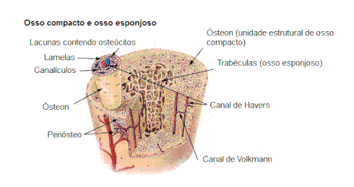 Apresenta pouquíssimo espaço medular, possuindo, no entanto, um conjunto de canais que são percorridos por nervos e vasos sanguíneos: canais de Volkmann e canais de Havers. Por serem uma estrutura inervada e irrigada, os ossos têm sensibilidade, alto metabolismo e capacidade de regeneração.