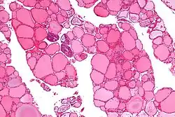 Tiroglobulina ou tireoglobulina é uma proteína dimérica produzida pelas células foliculares e utilizada na totalidade dentro da glândula tireoide. Formam coloides no centro dos folículos da tireoide. É usado na produção de tri-iodotironina (T3) e tetraiodotironina (T4).