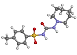 Os efeitos secundários comuns incluem náuseas, perda de apetite, diarreia e dor abdominal.[1] Outros efeitos secundários podem incluir erupção na pele e níveis baixos de açúcar no sangue.[1] Os efeitos colaterais são mais comuns em pessoas com problemas hepáticos ou renais.[1] É uma sulfonilureia.[1]