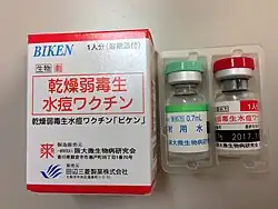 A vacina contra a varicela ficou disponível comercialmente em 1984.[2] Está na Lista da Organização Mundial da Saúde da Medicina Essencial, a medicação mais importante em um sistema de saúde básico.[6] Nos Estados Unidos custa entre 100 e 200 USD.[7]