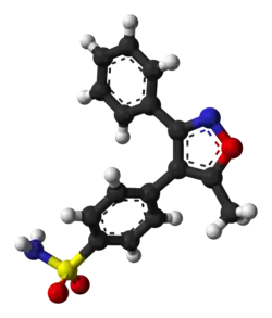 Valdecoxibe é um fármaco da classe dos analgésicos. Atua por inibição seletiva de ciclooxigenase do tipo 2 (COX-2)[2] e pode ser indicado em casos de dores agudas, dismenorreia primária, artrite reumatoide e osteoartrites.