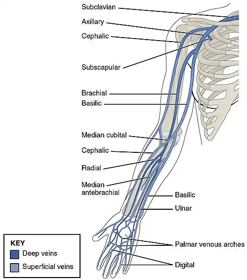 A veia cefálica é uma das principais veias do membro superior, assim como a veia basílica.[1]
