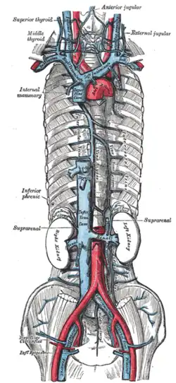 As veias frênicas inferiores seguem a trajetória das artérias frênicas inferiores; a direita termina na veia cava inferior; a esquerda é frequentemente representada por dois ramos, um deles terminando na veia renal esquerda ou veia suprarrenal, enquanto o outro passa em frente ao hiato esofágico no músculo diafragma e se abre na veia cava inferior.[1]