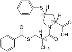 | Nome IUPAC | (2S,4S)-1-[(2S)-3-(benzoylthio)-2-methylpropanoyl]-4-(phenylthio)-L-proline | ||||||||