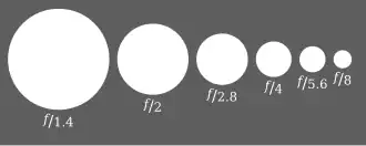 A abertura é usualmente medida em números f. Uma objetiva tem um conjunto de "f-stop" que representam o dobro na quantidade de luz que passa através da abertura. Uma "parada-f" menor representa uma abertura maior que permite que mais luz alcance o filme. Uma objetiva padrão vai ter números "f-stop" que vão de f/16 (pequena abertura) a f/2 (grande abertura). Lentes profissionais podem ter "f-stop" tão pequenas quanto f/1,0 (abertura muito grande). Estas são conhecidas como lentes rápidas porque permitem que muito mais luz atinjam o filme e consequentemente reduzem o tempo requerido para exposição. Lentes principais de grande abertura (lentes que têm uma distância focal fixa) são favoritas especialmente dos fotojornalistas que frequentemente trabalham em luz escassa, não tem como introduzir luz suplementar e captam eventos rápidos.