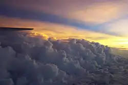 Entretanto, para que esse processo ocorra, é essencial que não haja diferenças significativas de velocidade horizontal nas diversas camadas da troposfera. Essas diferenças de velocidade são conhecidas como cisalhamento do vento: se os valores do cisalhamento do vento forem significativamente altas, a região de convecção não se sustenta, pois o ciclo do ar onde o ar quente e úmido e quente sobe e o ar frio e seco desce não se completa; é literalmente "cisalhado" pelas diferentes velocidades das camadas horizontais da troposfera.[19] Esse processo de convecção atmosférica, naturalmente barotrópica, ocorre apenas em águas quentes dos oceanos tropicais, onde a temperatura da superfície do mar é superior a 26 °C. Nessas condições, há ar úmido suficiente para que a região de convecção se sustente. Por outro lado, não há ar úmido suficiente sobre águas mais frias ou sobre continentes, não tendo, portanto, condições para a sustentação de uma região de convecção.[20]