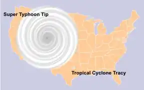 - ↑ Laboratório Oceanográfico e Meteorológico do Atlântico, Hurricane Research Division. «Frequently Asked Questions: Which are the largest and smallest tropical cyclones on record?». NOAA (em inglês). Consultado em 25 de julho de 2006