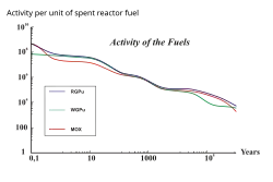 A utilização de diferentes combustíveis em reatores nucleares resulta em diferentes composições do combustível nuclear irradiado (SNF), com curvas de atividade variáveis.