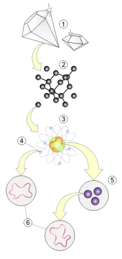 3. Nível Atômico - Prótons, nêutrons, e elétrons