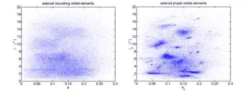 Atualmente, o uso mais proeminente dos elementos orbitais próprios é no estudo de famílias de asteroides, seguindo os passos do trabalho pioneiro de Hirayama.