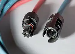 A corrente elétrica contínua que proporcionam os módulos fotovoltaicos se pode transformar em corrente alternada mediante um aparelho eletrônico chamado inversor[107] e injetar na rede elétrica (para venda de energia) ou bem na rede interior (para autoconsumo).