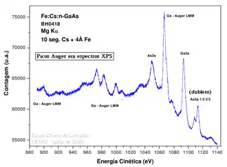 - ↑ A análise do presente sistema (Fe:GaAs) por XPS bem como várias outras seções deste artigo baseiam-se no trabalho de Carvalho, Lauro Chieza de - UFMG - 11 de julho de 2005. Outras referências, ver trabalhos de T. Zhang et. al.; H. J. Zhu et.al.; Y. B. Xhu et. al.; Steven C. Erwin et. al.; S. Mirbit et. al.; X. F. Jin et. al.; entre vários outros.