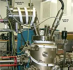 - ↑ Vogel, U.; Brachmann, E.; Oswald, S.; Menzel, S.; Gemming, T.; Eckert, J. (julho de 2015). «Evaluation of a mobile vacuum transfer system for in vacuo XPS analysis using as-deposited Ti thin-films». Vacuum: 81–84. ISSN 0042-207X. doi:10.1016/j.vacuum.2015.04.001. Consultado em 10 de maio de 2024