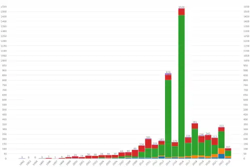Em 30 de dezembro de 2024, um total de 7387 exoplanetas confirmados estão listados na Extrasolar Planets Encyclopaedia, incluindo alguns que foram confirmações de alegações controversas do final dos anos 80.[2] A primeira descoberta publicada a receber confirmação subsequente foi feita em 1988 pelos astrônomos canadenses Bruce Campbell, G. A. H. Walker e Stephenson Yang da Universidade de Vitória e da Universidade da Colúmbia Britânica.[52] Embora eles tenham sido cautelosos em reivindicar uma detecção planetária, suas observações de velocidade radial sugeriram que um planeta orbita a estrela Gamma Cephei. Em parte porque as observações estavam no limite das capacidades instrumentais na época, os astrônomos permaneceram céticos por vários anos sobre essa e outras observações semelhantes. Pensava-se que alguns dos planetas aparentes poderiam ter sido anãs marrons, objetos intermediários em massa entre planetas e estrelas. Em 1990, foram publicadas observações adicionais que apoiaram a existência do planeta orbitando Gamma Cephei,[53] mas trabalhos subsequentes em 1992 novamente levantaram sérias dúvidas.[54] Finalmente, em 2003, técnicas aprimoradas permitiram confirmar a existência do planeta.[55]