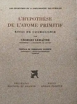 Lemaître propôs o que ficou conhecido como teoria do desenvolvimento inicial do universo do Big Bang, que ele chamava de "hipótese do átomo primordial".[5]