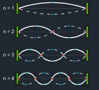 [2][3] (frequências de ressonância, ondas estacionárias em cordas, duas extremidades fixas)