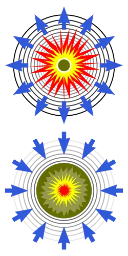 Em algumas formas de armas termonucleares, a energia dessa explosão é então usada para implodir uma cápsula de combustível de fusão antes de incendiá-la, causando uma reação de fusão (ver projeto Teller-Ulam). Em geral, o uso de radiação para implodir algo, como em uma bomba de hidrogênio ou em uma fusão de confinamento inercial acionado por laser, é conhecido como implosão de radiação.