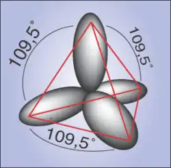 Como parte das suas investigações sobre a natureza da ligação química, Pauling criou o conceito de hibridização das orbitais atómicas. A mecânica quântica utiliza o número quântico l para determinar o número máximo de electrões em cada orbital (denominando as orbitais com as letras s, p, d, f, g e h); Pauling observou que para descrever a ligação química nas moléculas, é preferível construir funções que são uma mistura destas orbitais. Por exemplo, as orbitais 2s e 2p de um átomo de carbono, podem-se combinar para formar quatro orbitais equivalentes, chamadas orbitais híbridas sp³. Estas orbitais híbridas podem descrever melhor a existência de compostos como o metano, de geometria tetraédrica. De forma similar, a orbital 2s pode combinar-se com duas orbitais 2p, formando três orbitais equivalentes, chamados orbitais híbridos sp², sendo que a terceira orbital 2p não se hibridiza. Esta estrutura permite descrever os compostos insaturados, como o etileno.