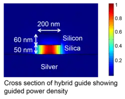 - ↑ Krasavin, Alexey V.; Zayats, Anatoly V. (19 de maio de 2010). «Silicon-based plasmonic waveguides». Optics Express (em inglês). 18 (11): 11791–9. Bibcode:2010OExpr..1811791K. PMID 20589040. doi:10.1364/oe.18.011791