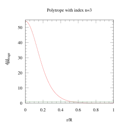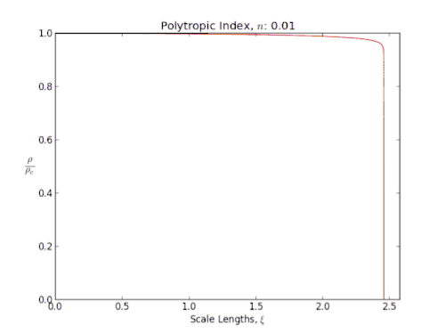Em geral, à medida que o índice politrópico aumenta, a distribuição da densidade é mais fortemente ponderada em direção ao centro (r = 0) do corpo.