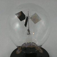 Um vácuo completo dentro do bulbo não causa movimento porque não há moléculas de ar suficientes para causar correntes de ar que movimentem as hélices e transfiram o calor para o exterior antes que os dois lados de cada hélice atinjam o equilíbrio térmico através de condução pelo material da hélice. Pressões interiores maiores não causam movimento porque as diferenças de temperatura não são suficientes para mover a maior concentração de ar: haveria então muita resistência atmosférica para a ocorrência das correntes de ar. O leve movimento do ar causado pela diferença de temperatura é bloqueado pela maior pressão antes que o efeito se espalhe para o outro lado.