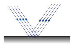 A Reflexão da luz é especular (espelhado) e difusa (retendo energia, mas perdendo a imagem), dependendo do meio. Além disso, se a interface estiver entre um dielétrico e um condutor a fase da onda refletida é mantida, de outro modo, se a interface estiver entre dois dielétricos a fase possa ser retida ou ser invertida, dependendo dos índices de refração.