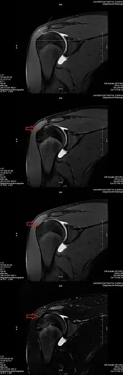 - ↑ Gaillard, Frank. «Magic angle effect (MRI artifact) | Radiology Reference Article | Radiopaedia.org». Radiopaedia (em inglês). Consultado em 22 de julho de 2021
